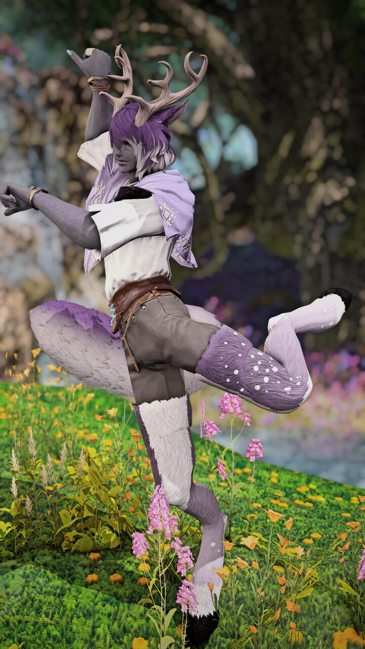 ♪ A kind-hearted faun with a connection to the forest and a love for the moon and stars.♪ A native of the Black Shroud, Ninka'ir is a hunter, bard, botanist, performer, and adventurer. He is a bounty hunter in a company known as NightRaid, where he works to protect the star from otherworldly threats.♪ He is one half of the duo behind Spring Crown, offering the finest in artisanal soaps, teas, and herbal remedies.