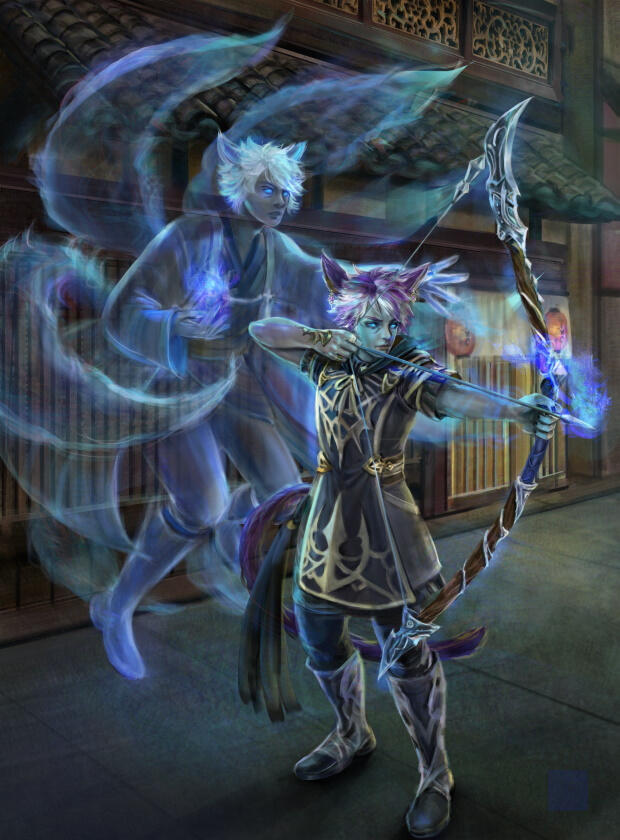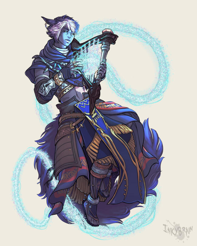 Weaponry - Ninka'ir is a seasoned bard, having wielded a bow ever since he was a child. Though he has some experience in other weapons, namely the lance, sword, and chakrams, it is with a bow that he's most comfortable, and should not be underestimated.Echo (Siren) - Ninka'ir possesses the Echo, and his is tied to music. Instead of understanding language, the Echo has gifted him the ability to play any instrument. More importantly, it has also made him susceptible to ambient dynamis. He hears the latent spiritual energy of an area like a song. Likewise, he can influence his surroundings with his song, though this ability is still emerging and unpredictable, only appearing in moments of duress...Survival - Having lived in the wilderness for most of his life, Ninka'ir possesses many talents related to survival, such as hunting, tracking, navigation, gardening, cooking, and field medicine.Languages - Eorzean Common | Elezen | Huntspeak | Hingan (Learning)Family: