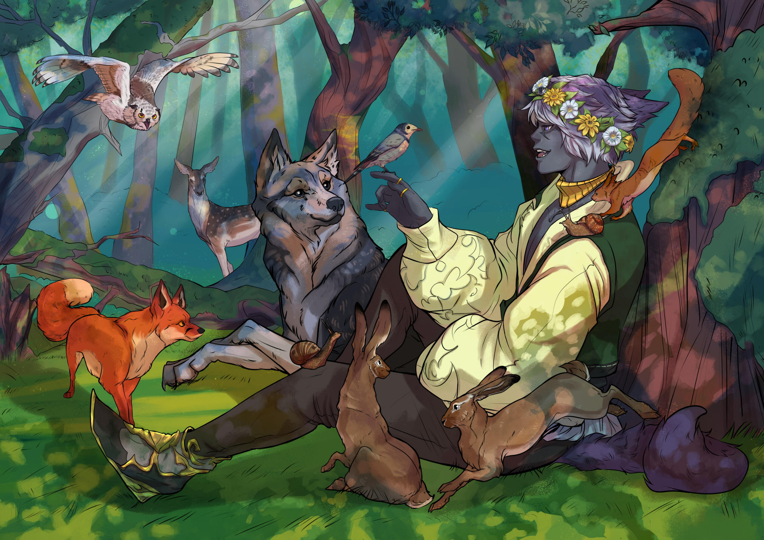 Siren of the Black Shroud: Ninka'ir's echo grants him the ability to manipulate the environment with his song. Those more well-versed in the topic of aetheric manipulation might be able to aid him...Forest Prince: Though the Tayuuns lived most of their life in isolation, Ninka'ir would encounter other Shroud natives from time to time.Songbird: Ninka'ir's services as a bard are available for hire. Whether you need musical entertainment, or would like to commission a ballad, his musical skill is unmatched. Alternatively, one might find him playing music in the odd tavern for coin.Green Claw: Ninka'ir grew up hunting game and tending crops in equal measure. He has a gift with raising plants and herbs, and can be found in the world harvesting flora. He can be contacted for any of your plant-life needs, including tea blends, herbal remedies, and floral arrangements.Wanderlust: Ninka'ir loves to travel, both for work and pleasure. Your character might encounter him in a myriad of places.Friend of Gastropods: Ninka'ir's companions of choice are snails. He raises many snails in his home, finding them cute and companionable. If you get him started about snails, he might never stop...